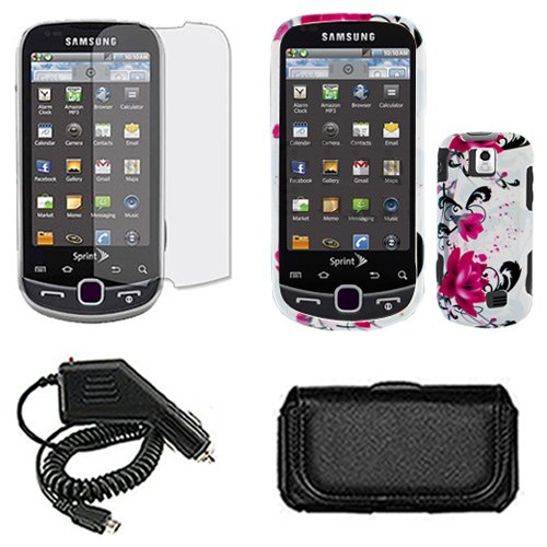 Samsung Intercept Moment 2 M910 Combo Red Flower on White Protective Case Faceplate Cover + LCD Screen Protector + Rapid Car Charger + Black Horizontal Leather Pouch for Samsung Intercept Moment 2 M910 Review